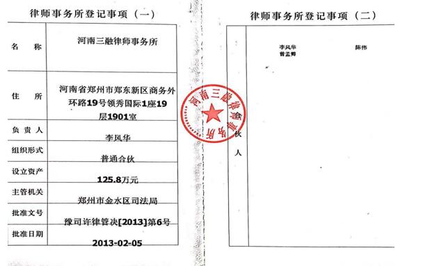 河南三融律师事务所(下称“三融律所”)创立于2013年,是经国家司法部备案、河南省司法厅批准的专业法律服务机构;律所下设金融部、上市部、公司部、民事部、刑事部,行政部、房地产部、研究部、创新部九个部门。目前拥有律师67多人,是一家以服务质量为重的综合性律师事务所。三融律所坐落于郑州市郑东新区河南省自贸服务区大厦,办公面积约2000平方,匠心打造现代办公环境。