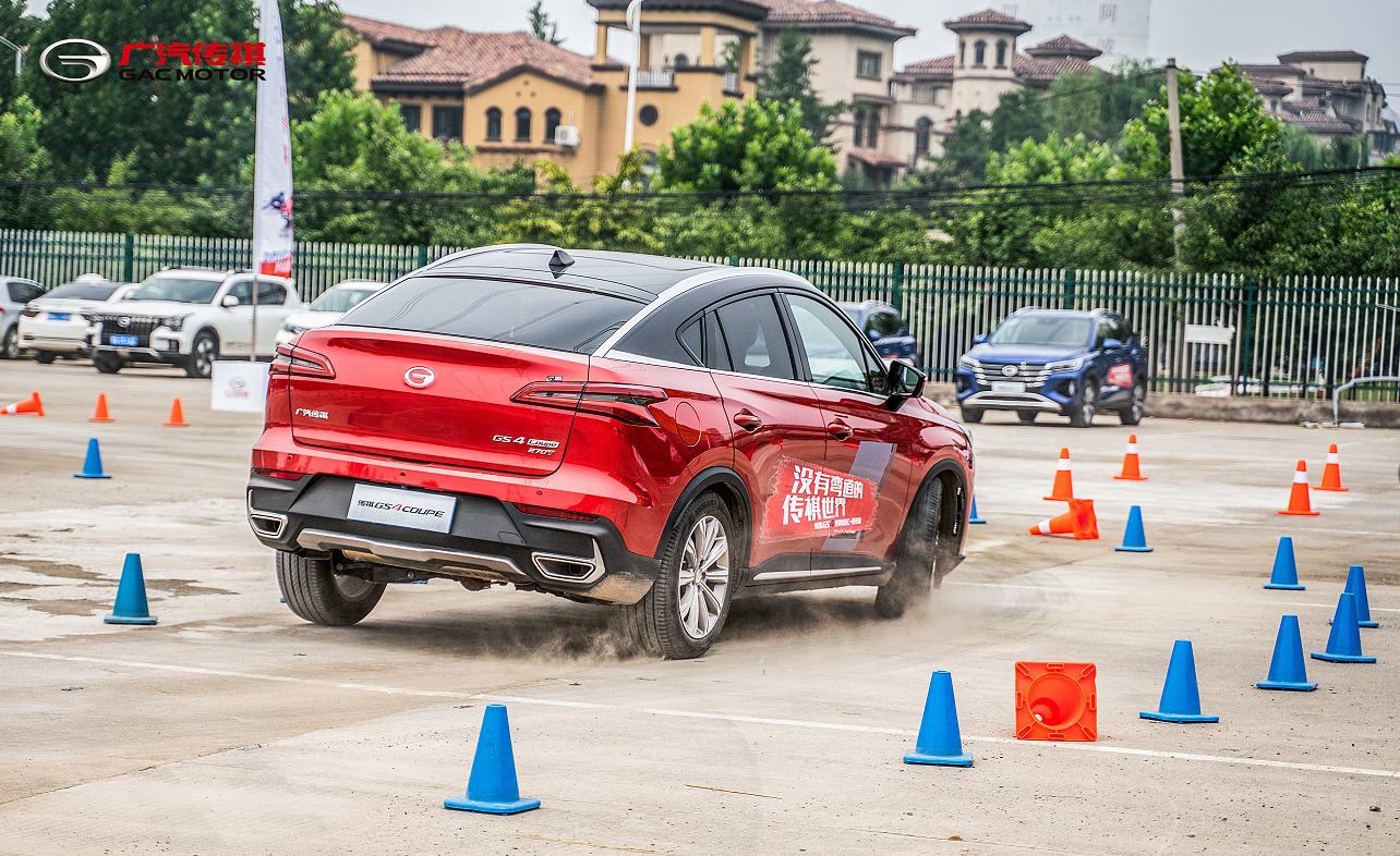 “直线竞速”、“蛇形弯道”、”定圆绕弯”一红一蓝两辆动感十足的轿跑SUV车型,在汽车竞速场地上随心所欲,潇洒自如的表演,用速度和超强的操控性能,激发在场观众的肾上腺素,以完美驾控诠释硬核性能。 7月18日上午,第二代传祺GS4、传祺GS4 COUPE双雄齐聚郑州越无止境试驾场,“没有弯道的传祺世界‘’—— 传祺GS4双雄驾控汇(郑州站)的活动现场,精彩演绎来自传祺GS4家族车型的智慧科技、澎湃动力和极限性能。让众多到场车主、嘉宾共同感受了传祺GS4家族车型的魅力。