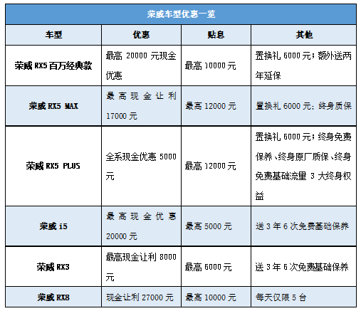 荣威、名爵推出全系优惠政策,年度购车最佳时机已来