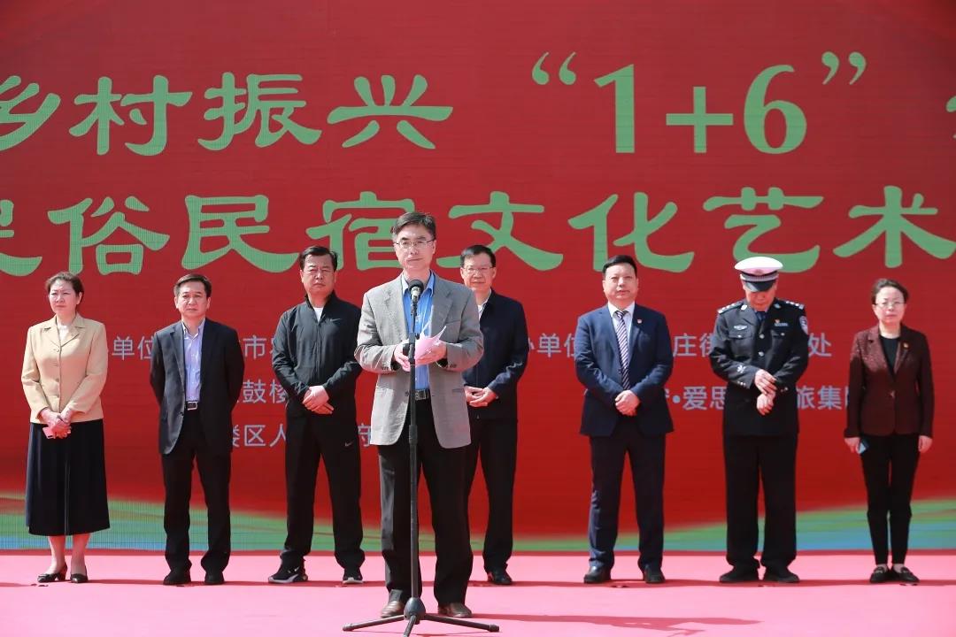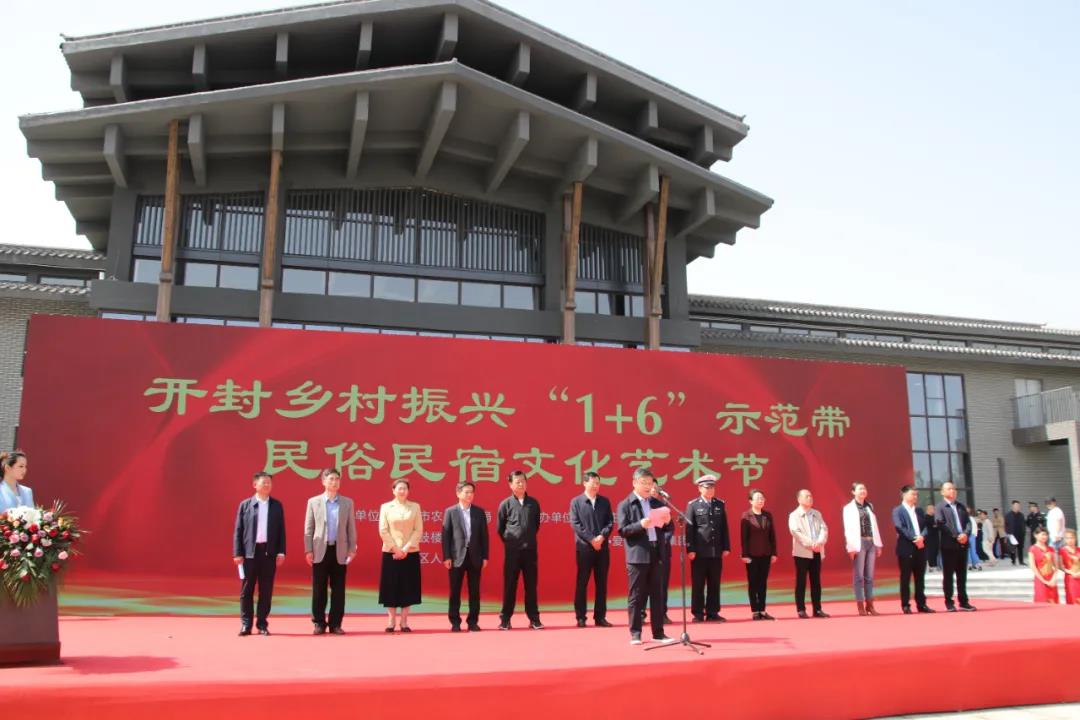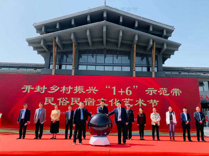 2021年4月30日上午,开封乡村振兴“1+6”示范带民俗民宿文化艺术节开幕式在开封市鼓楼区余店村举行。开封市委副书记秦保强,市直有关单位负责同志、鼓楼区四大班子领导,开封金控投资集团有限公司党委书记、董事长荆毅民,河南大宏·爱思嘉农旅集团董事长郭大宏等出席活动。