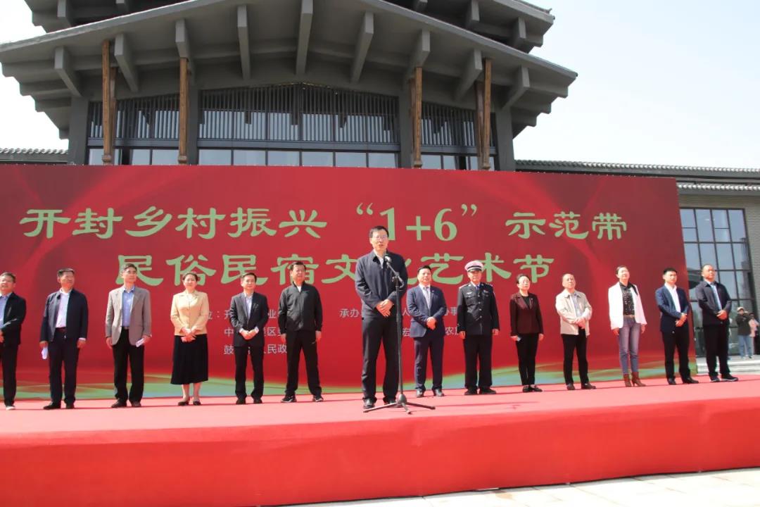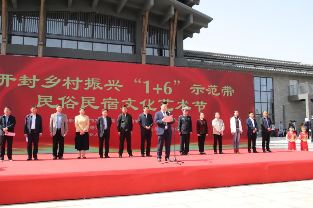 开封市委副书记秦保强宣布开封乡村振兴“1+6”示范带民俗民宿文化艺术节活动开幕。