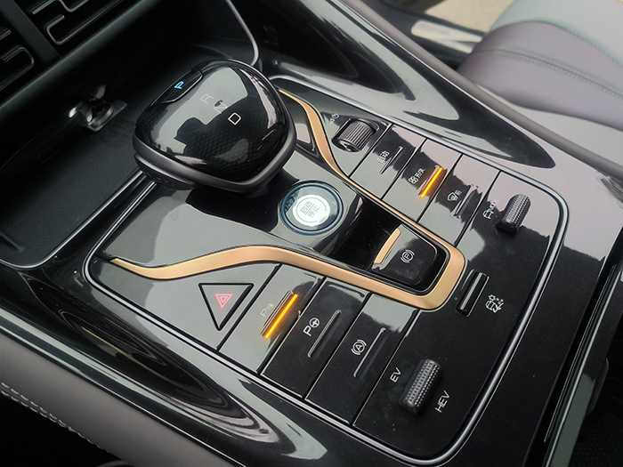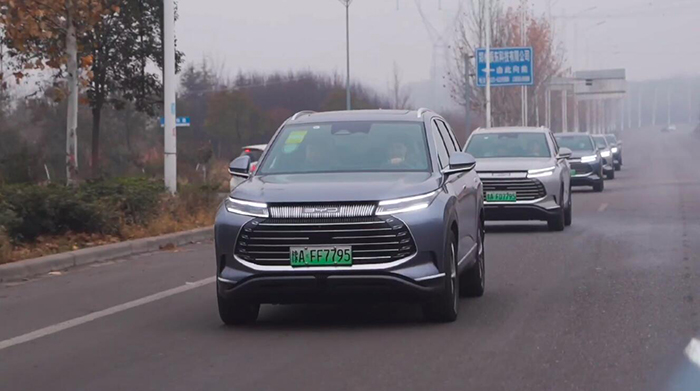 上市前,我们先进行了道路试驾。金牌讲师在出发前对我们进行了简单的车型讲解,护卫舰07提供DM-i版本和DM-p的四驱版本。两大动力系统均采用骁云-插混专用1.5Ti发动机,发动机最大功率为102kW,其中两驱版本的电动机最大功率为145kW;四驱版本采用全新开发后驱三合一总成,双电机最大总功率提升至295kW,最大总扭矩656N·m。