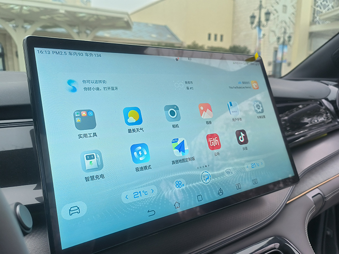 智能化配置上,新车全系标配15.6英寸自适应旋转悬浮Pad,内置全新DiLink智能网联系统。同时,还是国内品牌中首款支持iPhone NFC数字钥匙的车型,其全系标配的全场景数字钥匙,除了支持Android手机,还能用iPhone或Apple Watch来解锁、闭锁以及启动车辆。