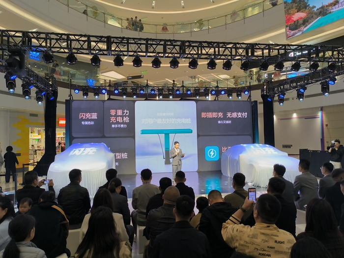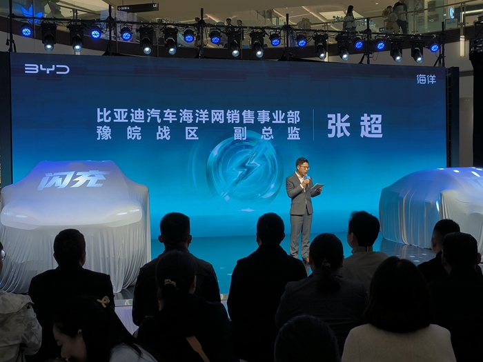 比亚迪海洋网豫皖战区副总监张超先生现场解读了比亚迪最新的技术,5分钟充好,9分钟充饱,零下30°只多3分钟的卓越能力。同时,所有搭载第二代刀片电池的闪充车车主,均享有重磅“闪充权益”,自交车之日起,在全国闪充站可享受1年的免费闪充权益,让闪充体验更畅快。