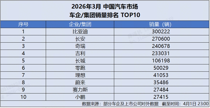 当前位置:资讯 > 比亚迪 3 月销量破 30 万!销量冠军领跑车市 4 月 1 日,比亚迪发布 2026 年 3 月产销数据,单月总销量达300222 辆,强势突破 30 万辆大关,再添荣耀战绩,斩获中国车企销量冠军,并连续 58 个月蝉联中国新能源汽车销量冠军,持续稳固行业龙头地位。截至目前,比亚迪新能源汽车累计销量已超1580 万辆,一季度累计销售 700463 辆,以硬核数据印证技术与规模双重实力。